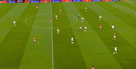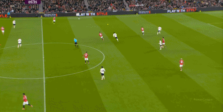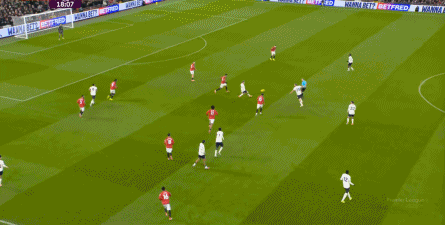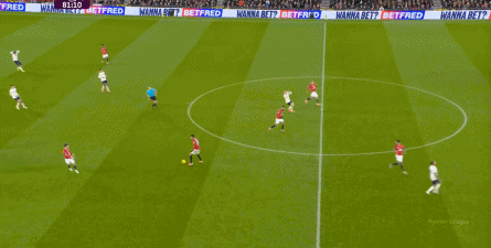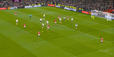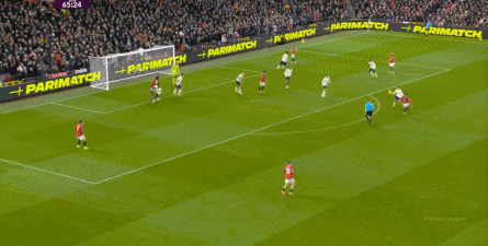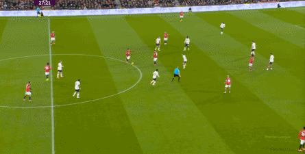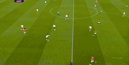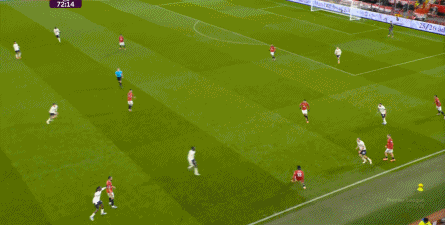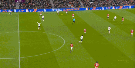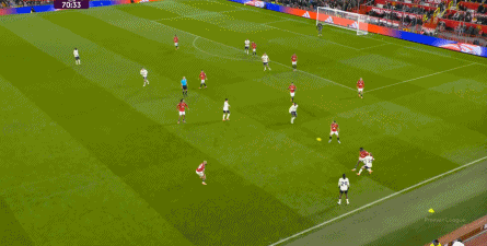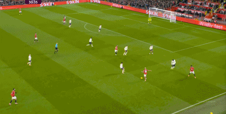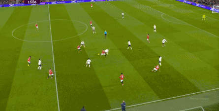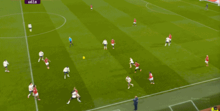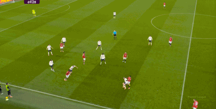 过程中,随着卢克-肖的前插,曼联投入的人手确实增加了,所以在进攻节奏没那么快,效率也没那么高的情况下,从强侧打不进去,但形成了转移,从而在弱侧完成起脚,便在禁区内让达洛特捡了一个漏。