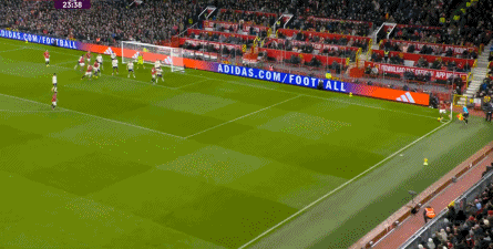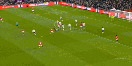 从这里夺回球权,曼联立刻发动进攻,但多尔古和布鲁诺的传中争顶配合,没有给西汉姆联制造多大的威胁,成为了对手下一次长球的起点: