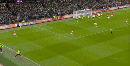 在这样的大背景下,谁先进球,谁就会在这样的局面里稍微占上一点优势,于是在第58分钟,主场作战的曼联率先做到了这一点: