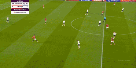这样一来,防守端有难,但曼联能通过进攻端打回去,可以说是形成了互怼局,上半场两支球队几乎是各打了一半的好球,也可以说是形成了一种平衡,毕竟随着进攻压力和威胁的支出,曼联在防守端的压力也逐渐减轻了。