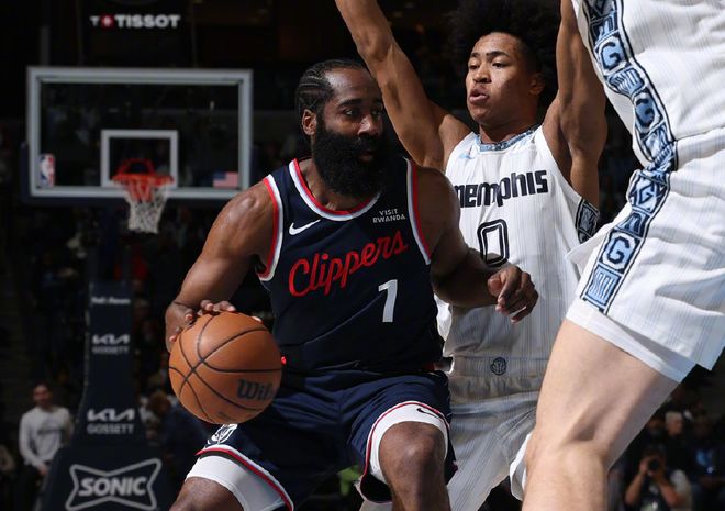 快船98-107不敌灰熊,伦纳德24+8,哈登18+7,科沃德23+14+5